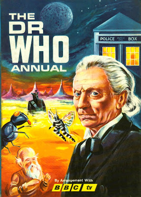 The Doc made his debut on Saturday, 23rd November, 1963 - just over 47 years ago. So, as a special treat, here's the cover of the very first DOCTOR WHO ANNUAL from 1965 (for 1966). The artist was obviously supplied with a photo of William Hartnell for reference because the likeness is spot-on. It's just a shame that he wasn't given a photo of a police box as well - that has to be the worst looking TARDIS I've ever seen in my life. You could ski off that roof - and where's the flashing light? And there should definitely have been a DALEK on that cover!