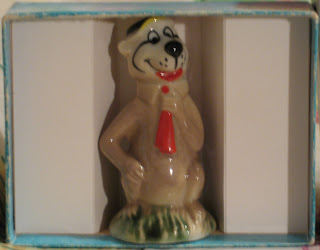 I haven't yet seen the new YOGI BEAR movie, but the trailer looks like a lot of fun, so I'll be buying my ticket the moment it's released in Britain. It won't be the first time the redoubtable bruin has appeared in cinemas 'though - he made his silver screen debut back in the mid-'60s in HEY THERE, IT'S YOGI BEAR, with no less a luminary than JAMES DARREN (THE TIME TUNNEL, T. J. HOOKER) as Yogi's singing voice. Also back in the (early) '60s, WADE produced this great little porcelain figure of BOO BOO's pal, along with HUCKLEBERRY HOUND and MR. JINX.