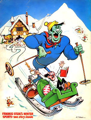 Speaking of ROBERT NIXON (as we were in the previous post), and continuing our Christmas theme, here's a wonderful FRANKIE STEIN illustration from the back cover of the WHOOPEE softcover book of the same name from 1975/'76. Unfortunately, this replacement copy of my original was somewhat water-damaged when I got it, but hopefully it won't detract from your enjoyment of Bob's masterful artwork too much.