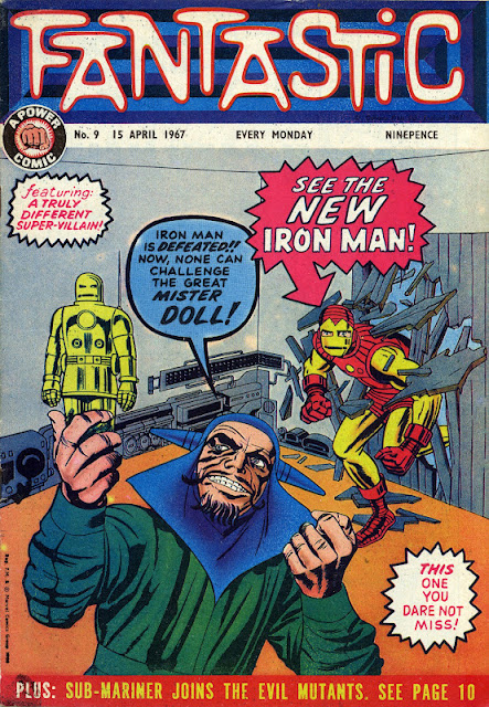 And now, starting with the first ever issue of FANTASTIC that I actually bought, here's the second part of our 1960s' covery gallery of the jewel in the POWER PACK crown. There's something about the cover to #7 which gnaws at me - the speech balloons have been relettered and, if I'm not very much mistaken, the art has certainly been retouched in places - if not completely redrawn (traced, most likely). On what do I base my opinion? By comparison with the cover of the original US version of TALES OF SUSPENSE. If you check it out, you'll see that the faces of KALA and STARK's friends differ slightly from the British printing. I'd be interested in what anyone else thinks on the matter, so don't be shy about letting me know - I'll be waiting.
