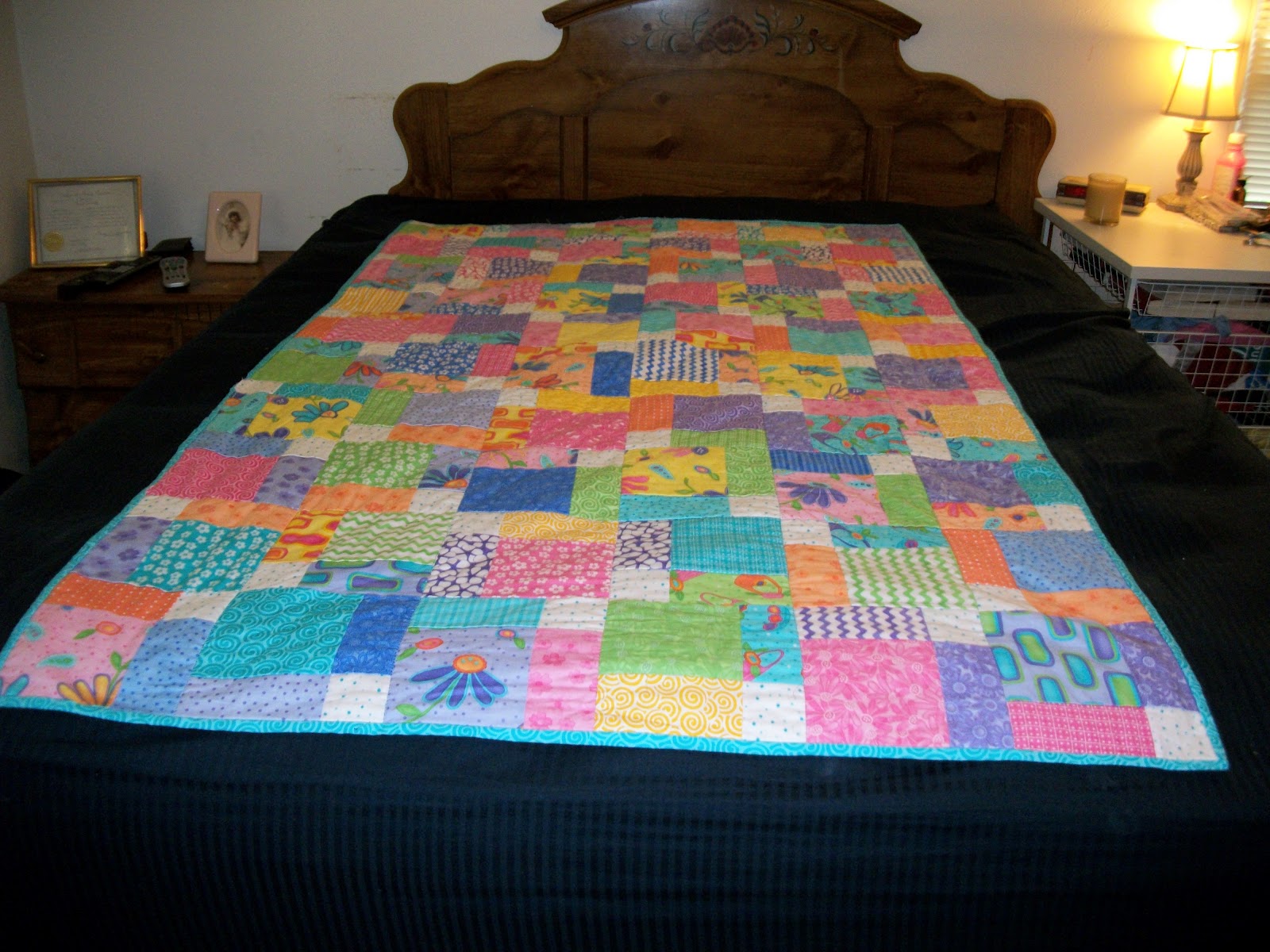 Here's another Disappearing 9 Patch quilt I made last year. My son Bryan stole this and rumor has it he can be seen cuddled under it a lot. I made this one scrappy and is the quilt I use for my background on this blog.