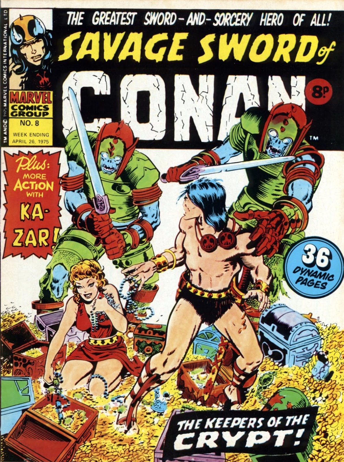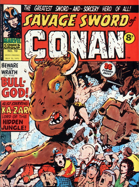 As stated last time, MARVEL UK's SAVAGE SWORD OF CONAN weekly from 1975 only lasted for eighteen issues. We've already seen the first six covers from the short-lived series in a recent post, so here are issues seven to twelve to cast your appreciative peepers over. The last batch will follow shortly.